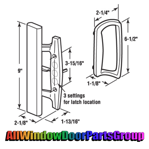 Guardian style loop handle for sliding patio doors. 3 15/16″ center-to-center hole spacing. Optional keylock assembly available.
