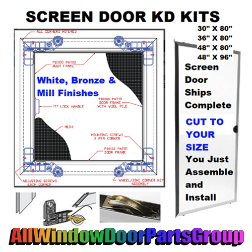 Sliding screen doors KD (knock down) kits that you or your handyman can easily assemble on site. You’ll get all the necessary parts shipped directly to you.