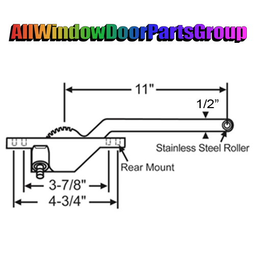 Rear mounting window operator. Single arm operator with stainless steel roller.