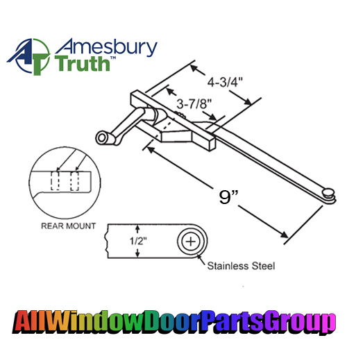 Rear mounting window operator. Single arm operator with stainless steel roller.