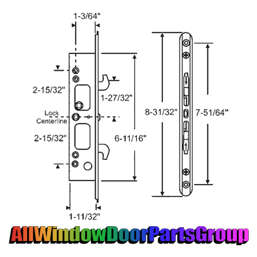 Mortise Locks come in many different shapes and sizes. See the diagrams for style and measurements on this patio door mortise locks – Guardian Glass Doors, Crestline, Vetter, Herculite, Heartland, Jones, Jordan, Kasson, Kawneer, Keller, Kinro, Larson, Lealco, Masco, Masonite, Caradco, Carlite, Cascade, Castlegate, Certainteed and many others.