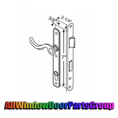 Weather shield complete lockset, keyway with 2 1/4″ backset, 24mm faceplate in polished brass only. Hole centers are 7″.